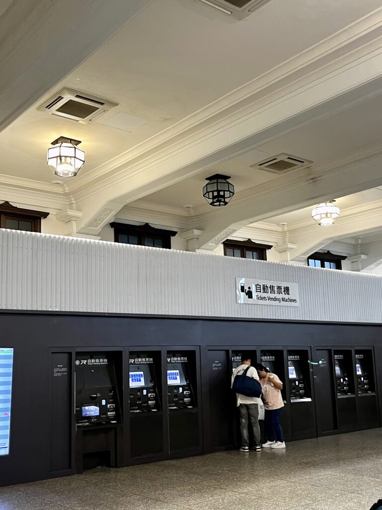 台南駅には、たくさんのチケット販売機が並んでいます。