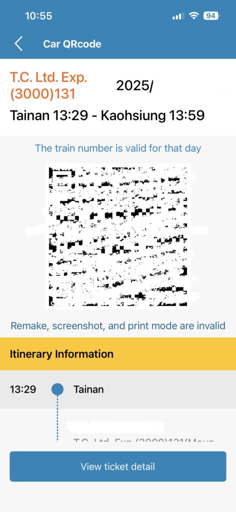 さらに使いやすい台湾鉄道e-Bookingアプリを使って。QRコードまで発行しましょう。チケットレスで旅行ができます。