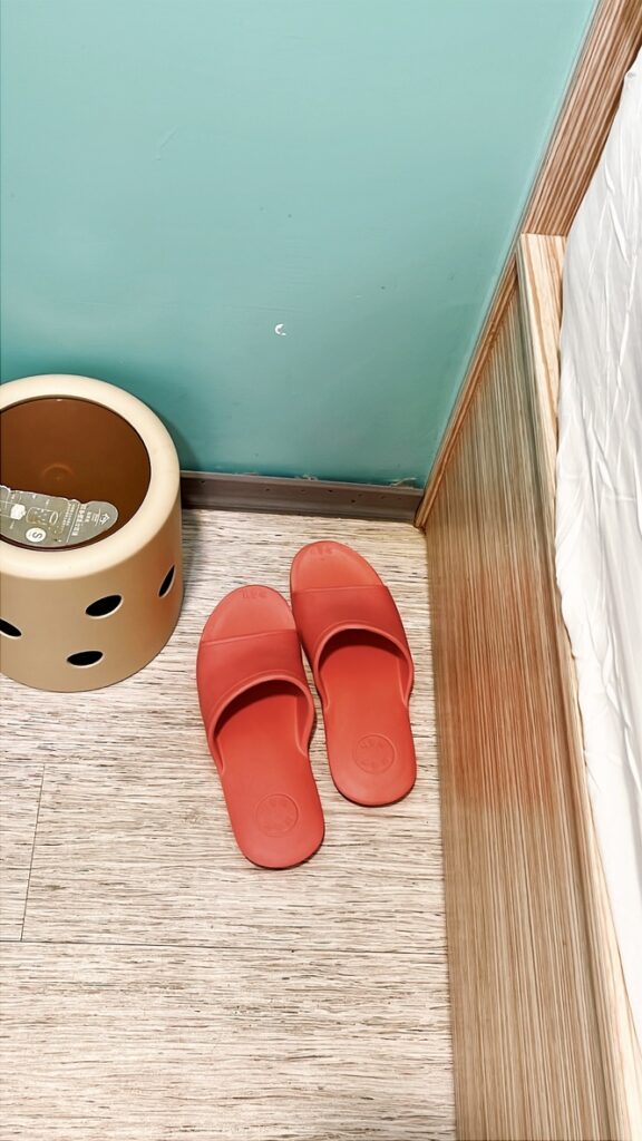 スリッパは、使用後に洗浄されています。館内全体の掃除が徹底しており、毎日塩素消毒まで行っていました。持ち込んだ使い捨てスリッパも利用していましたが、汚れが付きませんでした。