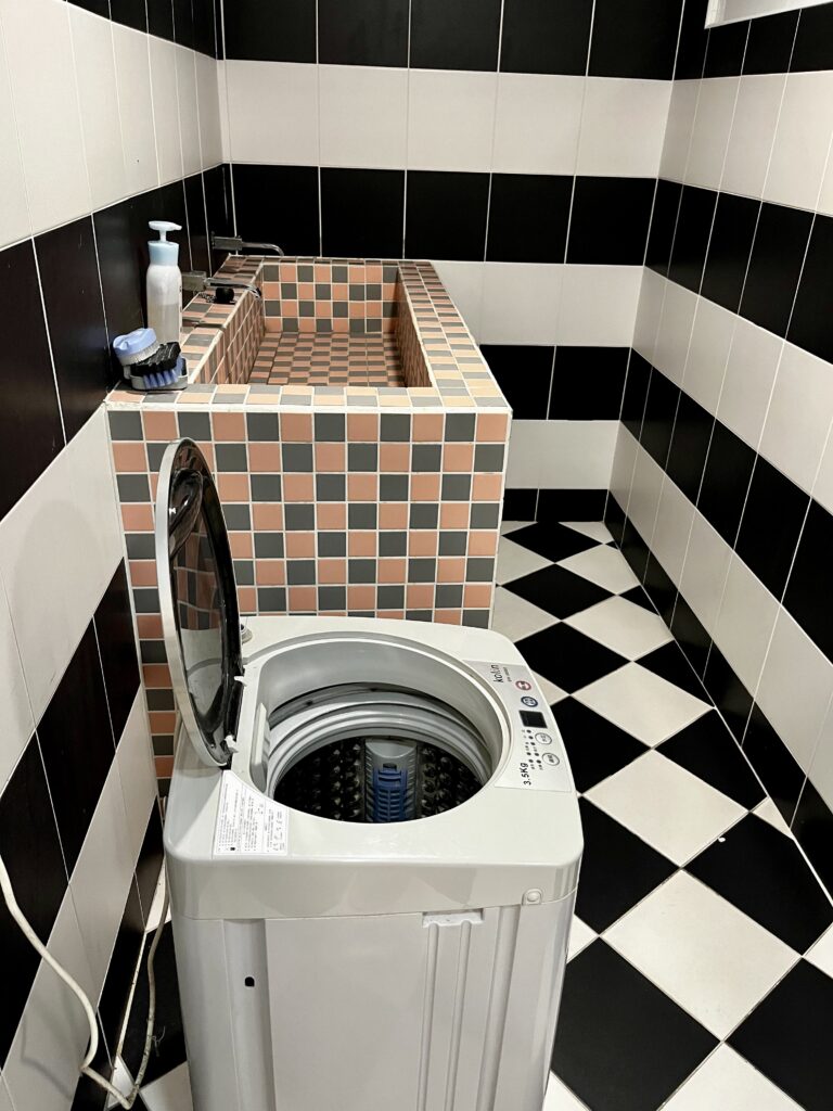 トイレとパウダールームの奥には、洗濯機があります。こちらも無料です。