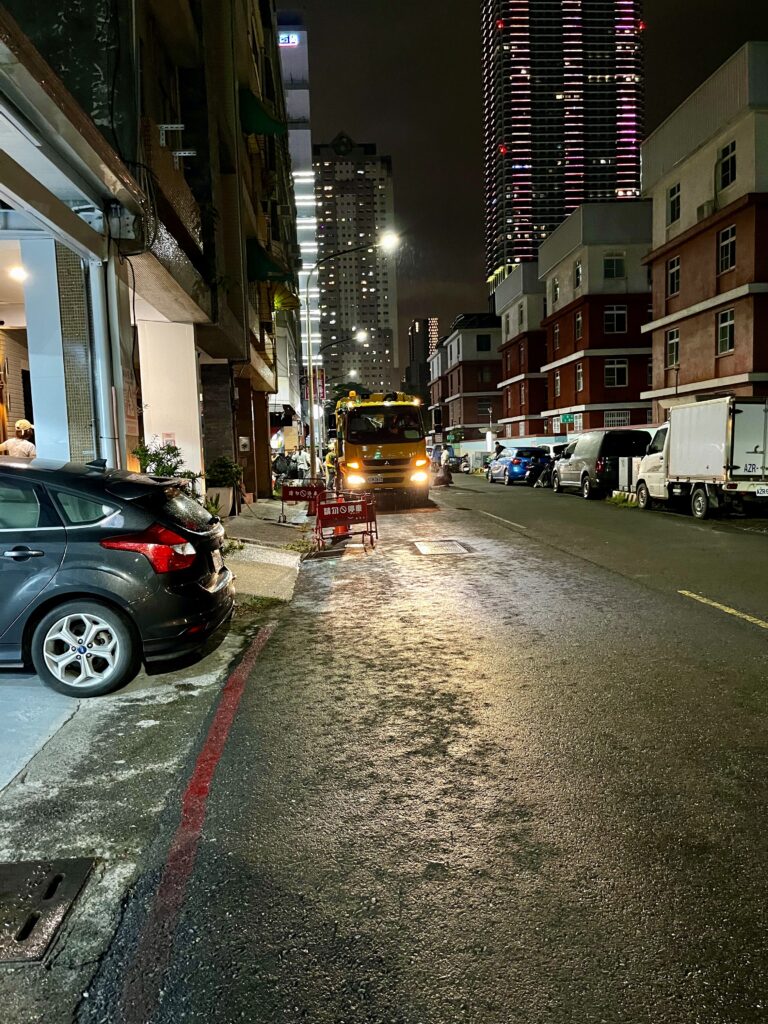 18:30 ホステルに戻って、小休憩します。再び出かけると、小雨が降っていました。外には多くの住人がゴミ収集車を待つために集まっています。台湾では毎日ゴミ収集車が各地域で巡回しているのですが、決まった時間に係員へ手渡しする必要があるのです。この情景をみるたびに、日本に生まれてよかったと思う出来事でした。