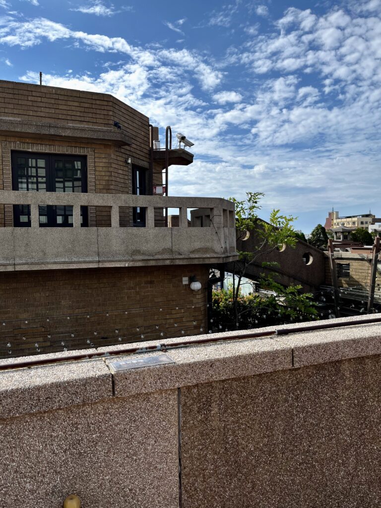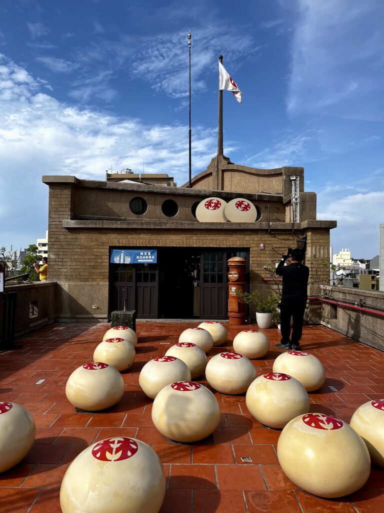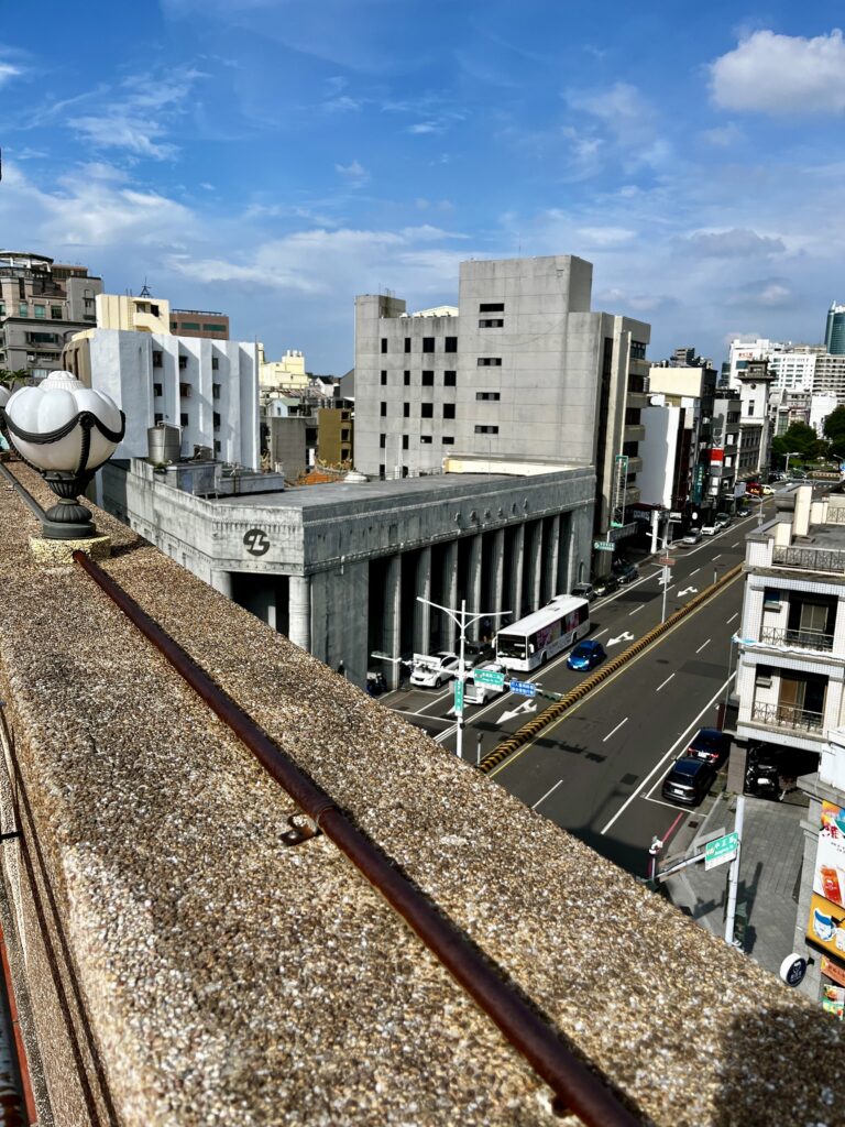 5階に到着しました。ここはレストラン街ですので、後ほど寄ります。屋上には、有名な『林』印の饅頭オブジェが並んでいますが、迂闊に触ってはいけません。屋上は結構狭く、周囲の壁が低めです。そのため、台南の街並みを四方から眺めることができます。