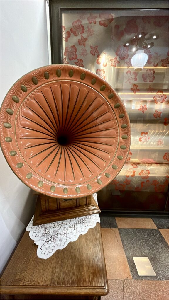 レジスター機が置いてあり、館内全体が昭和初期の時代なんです。