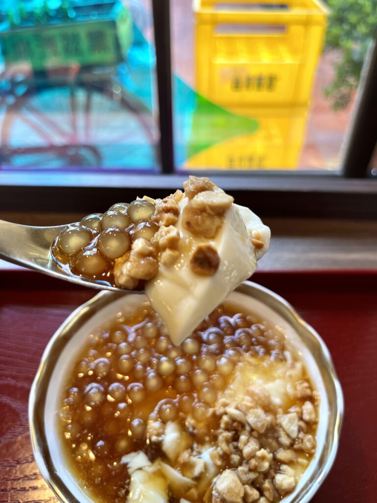 豆花は、暑さで疲れた体に染み渡ります。店内はたくさんのお客さんが談笑していますが、その中国語も良いBGMとなって異国感を味わえました。