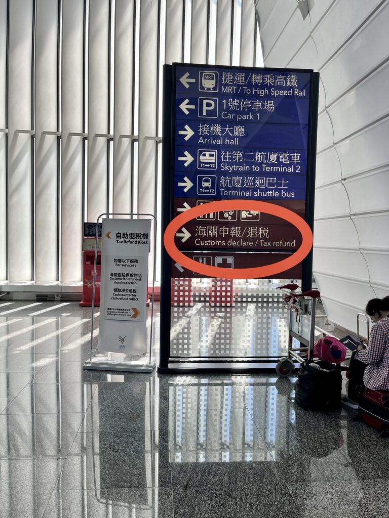 MRT桃園空港駅からエスカレーターで上がったところに、看板があります。道なりに進むとタックスリファンドの窓口にたどり着きます。桃園国際空港のタックスリファンドの情報も載せておきますね。