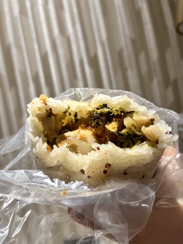 台湾の伝統的な朝食として親しまれるおにぎりです。温かいもち米に、揚げパン(油條)、肉そぼろ、たくあん、卵焼き、ピーナッツ粉などを包んだボリューム満点の一品。形は俵型で、手で持って食べやすく、屋台や朝市、コンビニでも販売されています。具材の組み合わせによって甘じょっぱさや食感が変わり、地域やお店ごとの個性が楽しめるのも魅力です。
