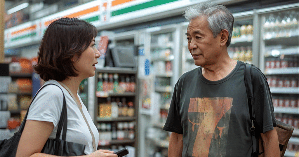 7:00 朝起きると、小雨が降っています。身支度をして朝食を買いに行きましょう。