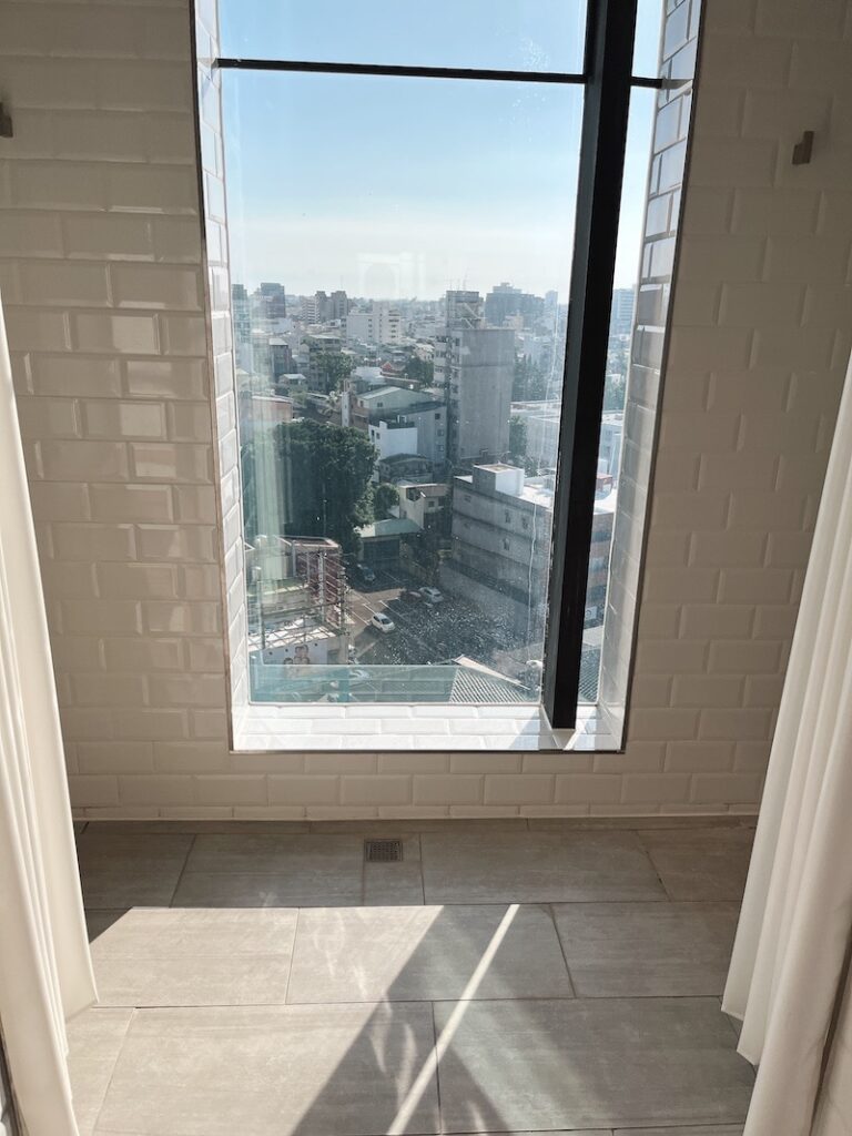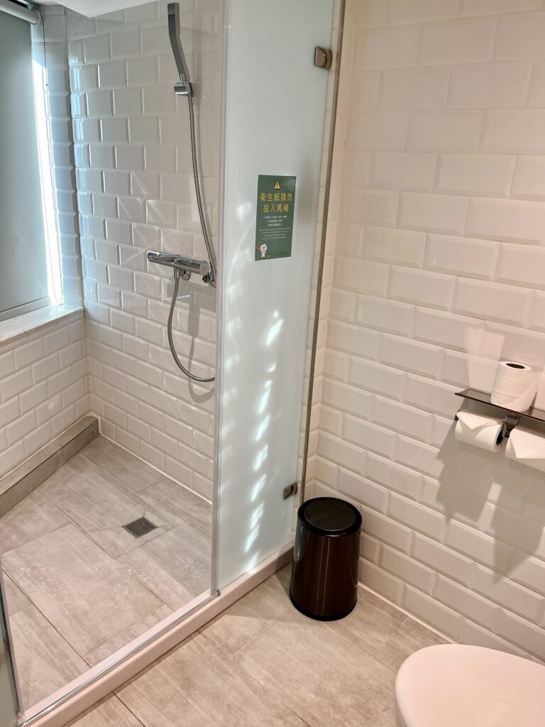奥にはトイレと一緒になった大きめなシャワー室があります。窓がついているため、明るい印象です。
