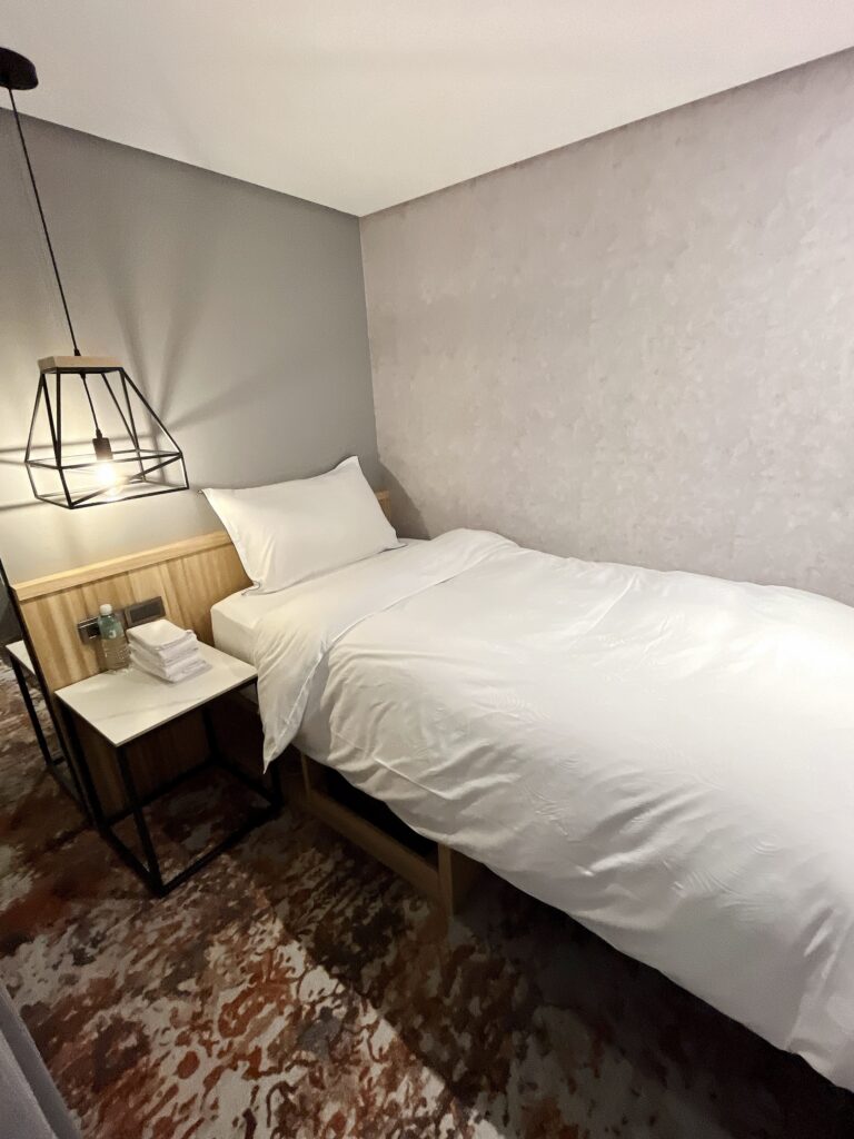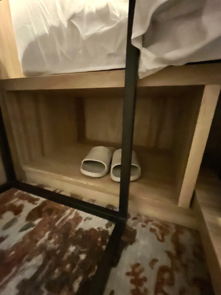 この日は平日のため非常に静か、かなり爆睡しました。ベッドマットの上に程よい柔らかさの厚めのシートが引かれており、安眠しやすいのです。『普通のホテルより、寝れるんじゃないかな?』と思えるほどです。