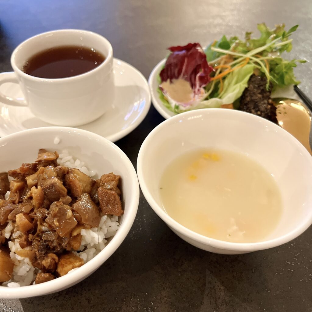 軽食:サラダ・ルーローハンをベースに、日替わりでメニューが変わります。