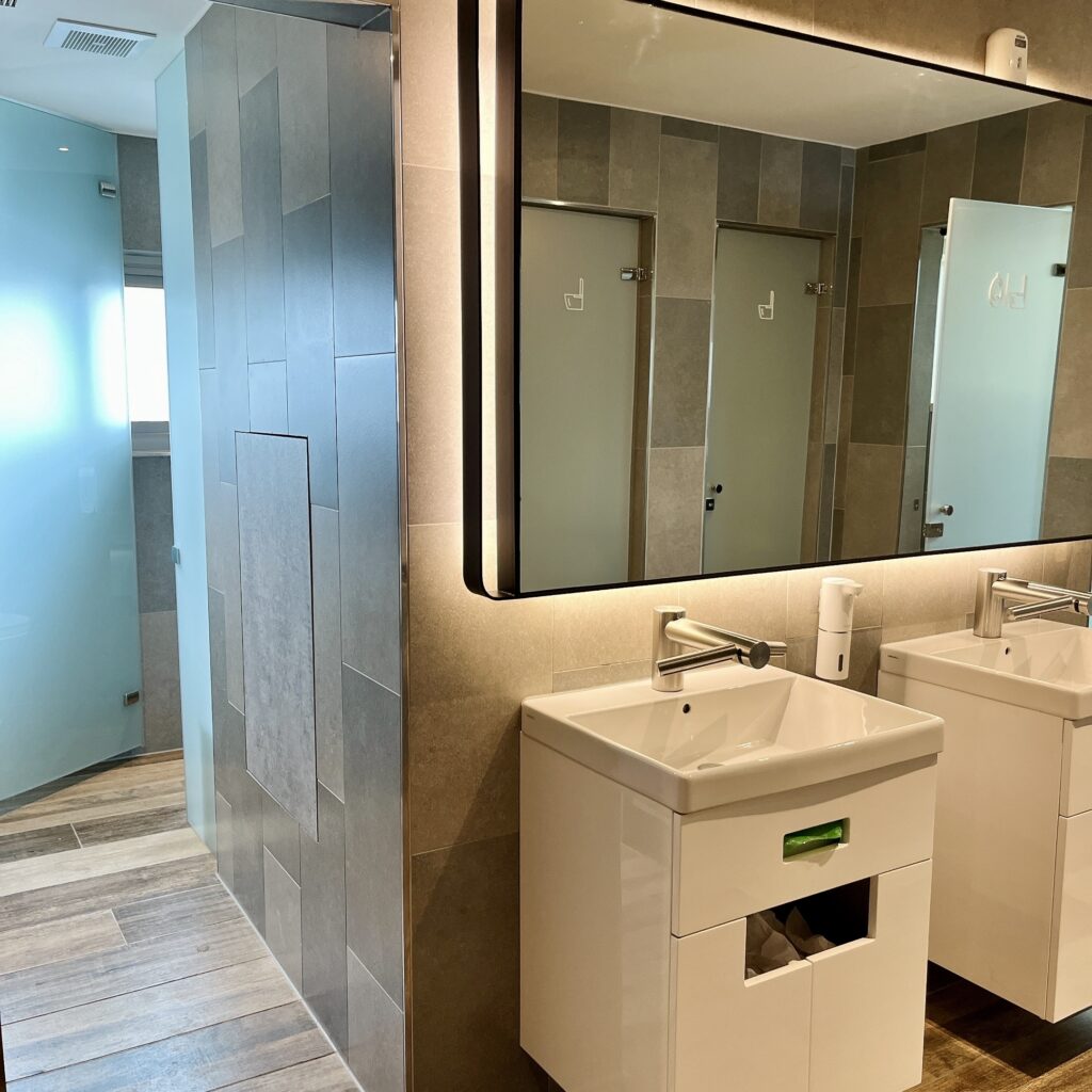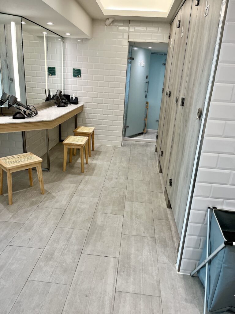 バスルームには私だけでしたので、写真を撮りました。シャワールームが並ぶほか、