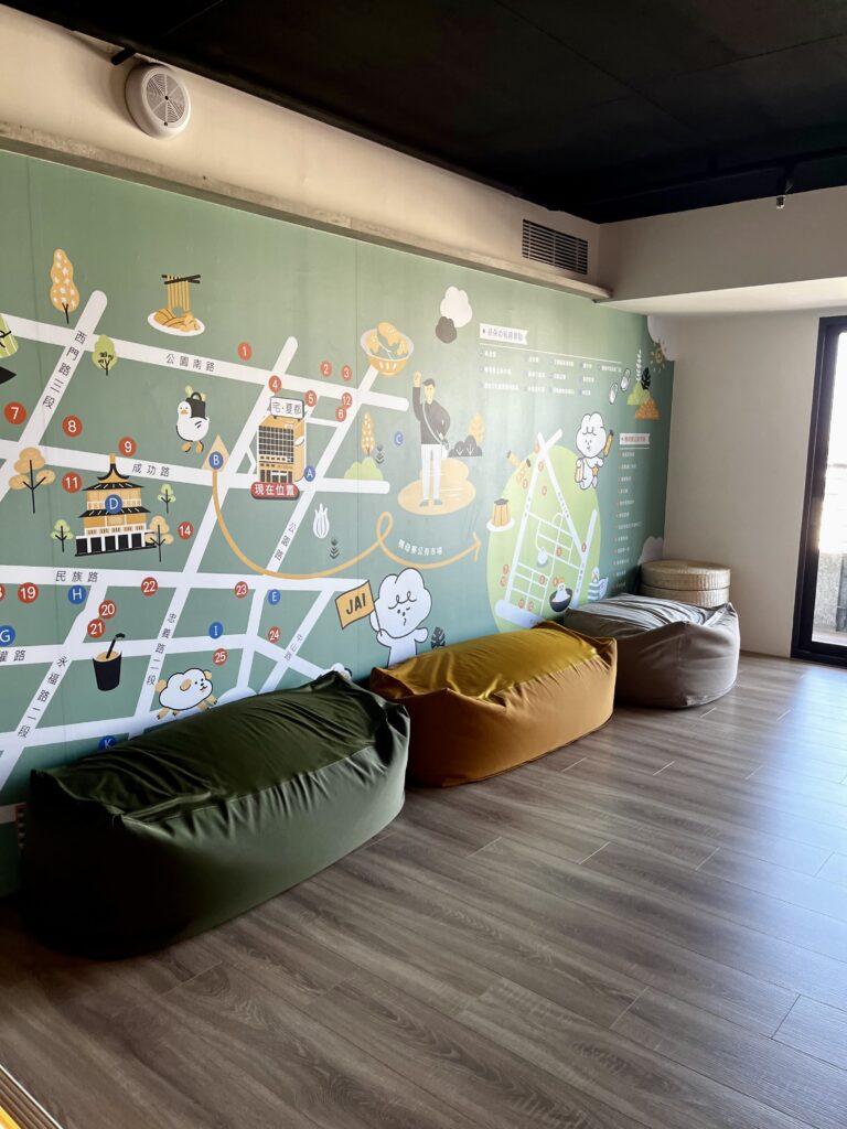 台南市の可愛らしい地図が壁に大きく書かれてますね!