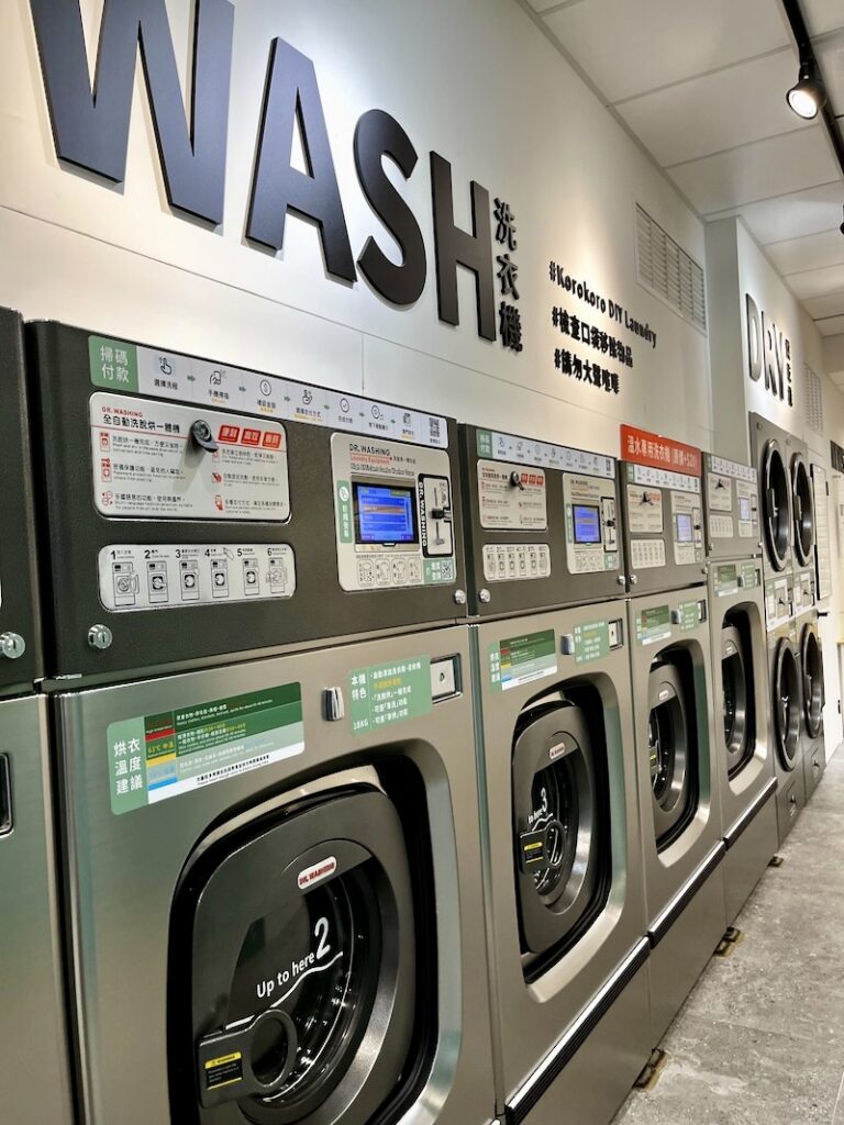 多言語対応のため、タッチパネルを操作して日本語選択ができます。洗濯方法を選び、必要な料金を10元コインを入れて使用。デジポットが必要ですが、LINE PAYなどで割引料金で利用できます。