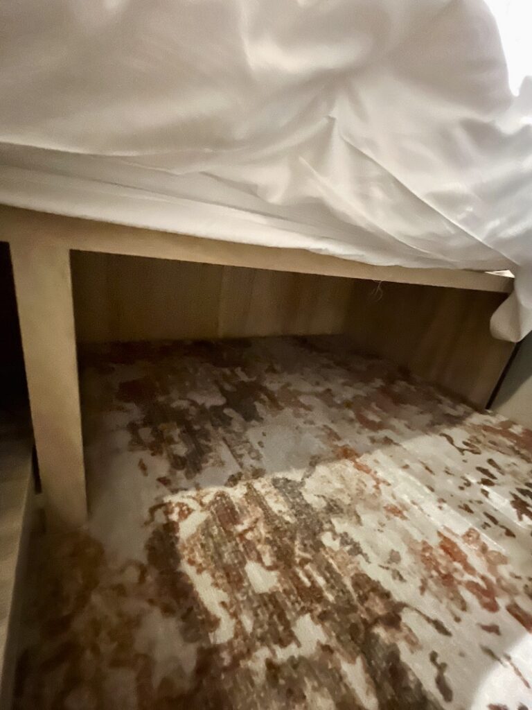 カーテンを開けると、目の前に綺麗にベッドメイキングされたダブルベッドがありました。