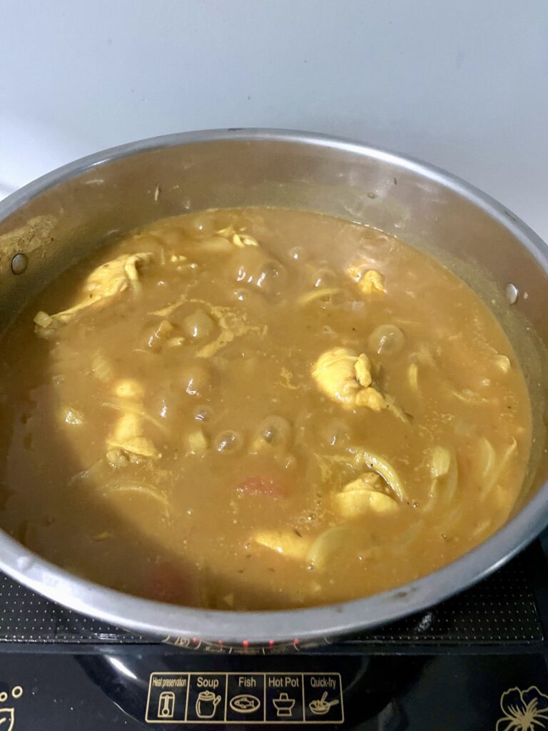 まず、タイ産日本米を電子レンジで炊きます。次にカレーですが、ちょっとした工夫をしました。カレー粉はタイのスーパーマーケットで手に入れ、日本から持ってきた米粉とガラムマサラで味付けを調整しました。見た目も味も、日本のカレーにかなり近づけることができました。