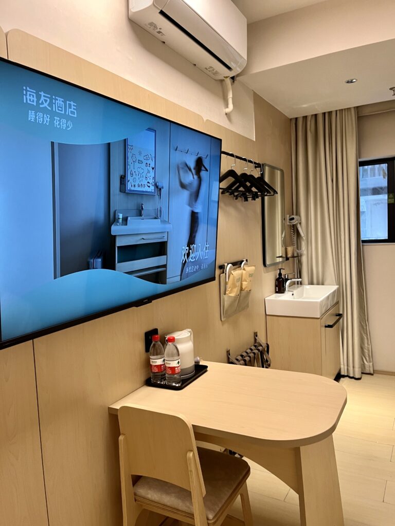 このホテルは外見が分かりづらく、手前に『全季酒店』と大きなホテルが隣接しているので、分からずにそちらへ寄ってしまいました。しかし、このホテルが非常に高い建物なので、遠くからは目印になります。
