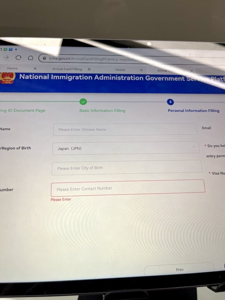 中国の入国カードは、空港到着後にQRコードを読み取って入力するデジタル方式が主流ですが、実はインターネット上で事前入力することも可能です。出発前に公式サイトから、パスポート情報・便名・入国目的・滞在先などを英語で入力し、完了すると確認画面やQRコードが表示されます。これを用意しておけば、到着後そのままイミグレーションへ進めるため安心です。ただし、日本語案内がほとんどなく、現地で再入力を求められる場合もあるため、事前入力と現地対応の両方を想定しておくと慌てずに済みます。