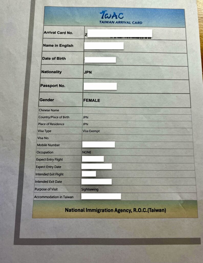 台湾入国時に使われる「TWAC(Taiwan Arrival Card)」とは