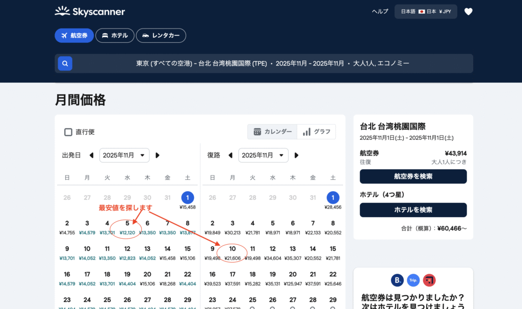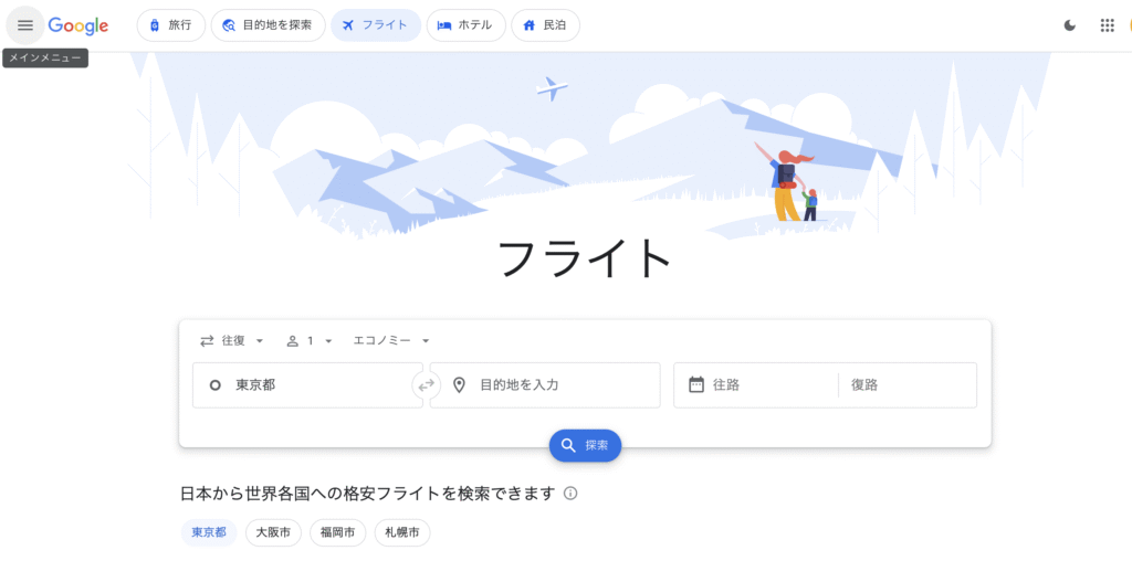 個人旅行のプランの立て方:スカイスキャナー Googleフライト