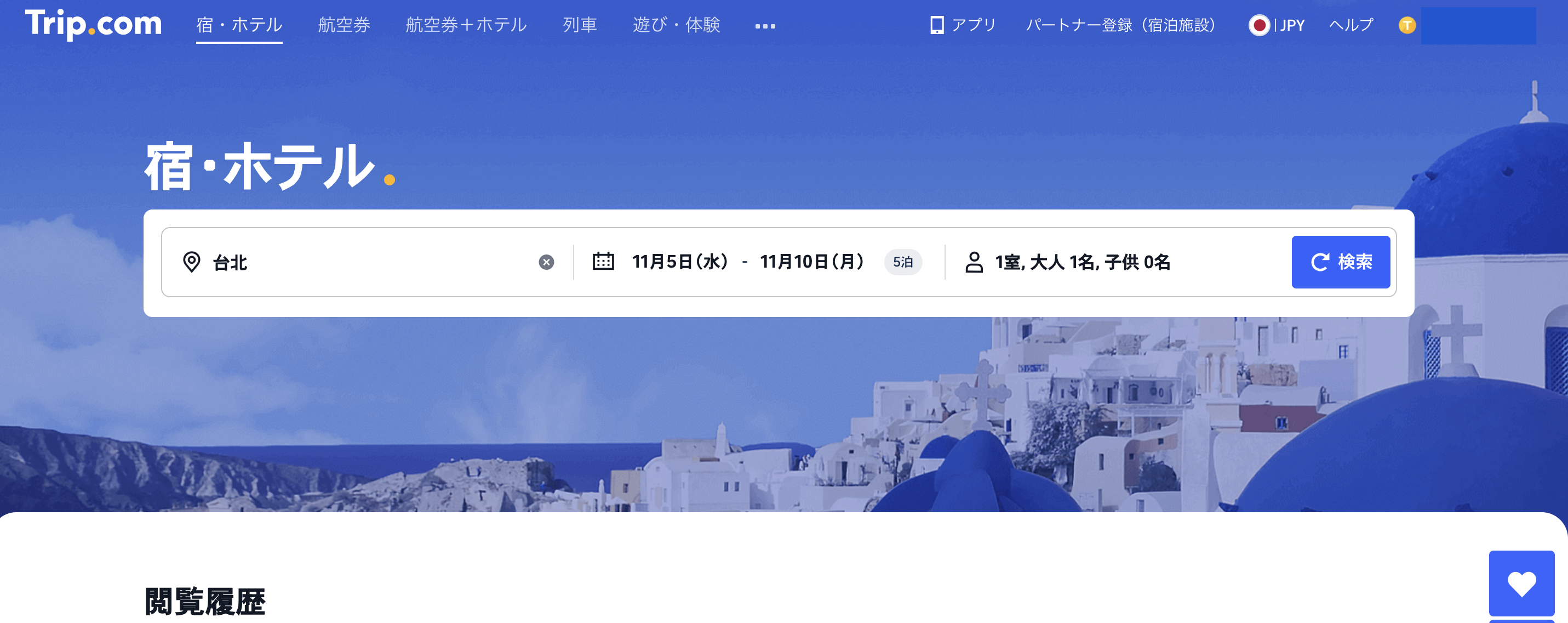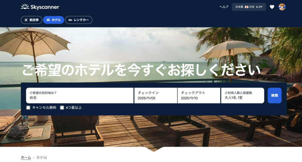 航空券の時と同じようにスカイスキャナーで探す方法もありますが、トリップ.comではホテルを同時に購入することで価格が割引されることがあります。