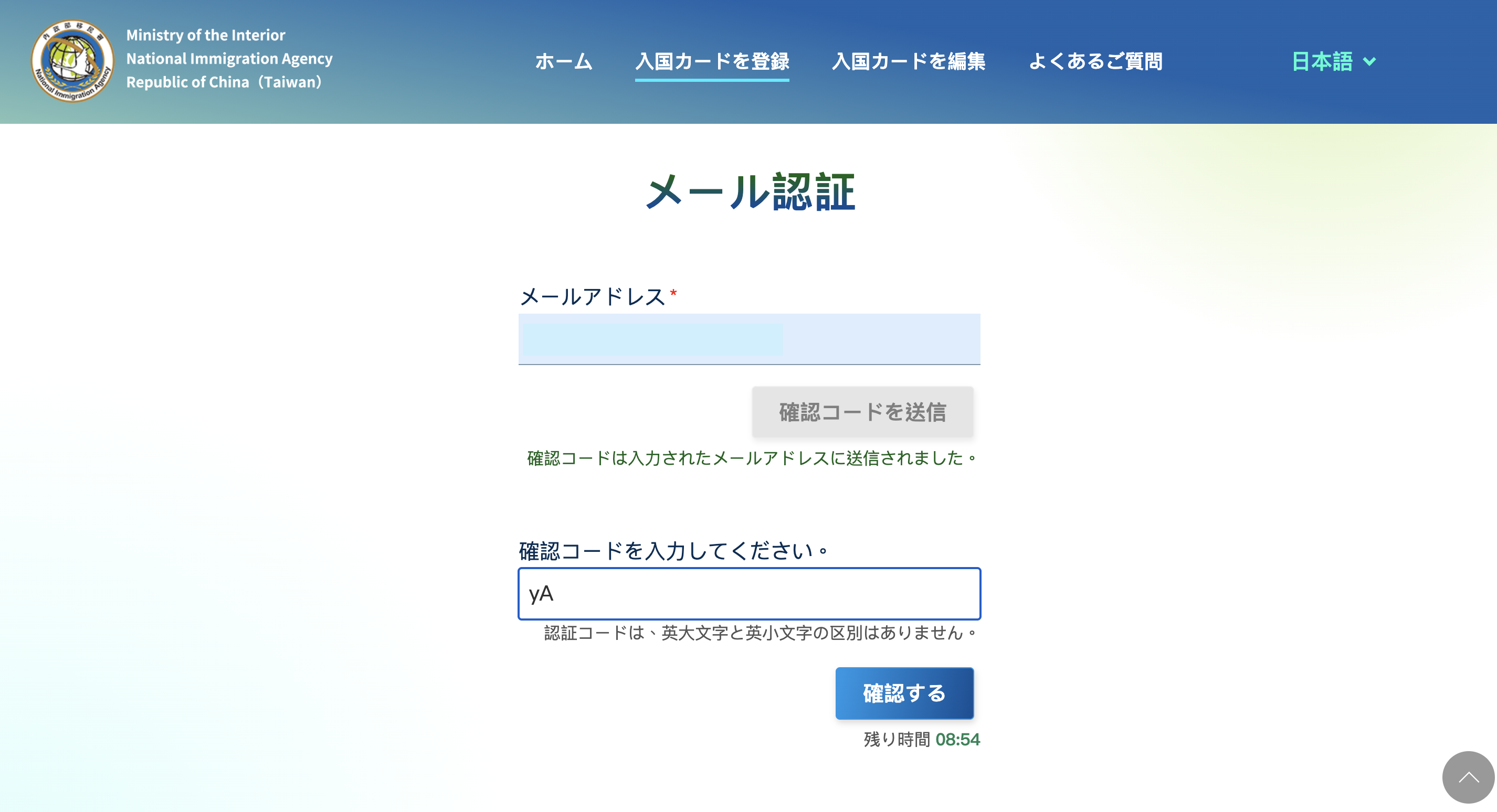 ④メールアドレスを入力し、『確認コードを送信』をクリックします。