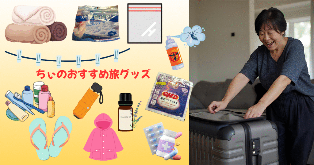 私は大手航空会社で予約しましたので、機内持ち込みの手荷物が7kgと預け入れ荷物23kgとゆとりがあります。着替えなどパッキングだけでなく、特徴的なおすすめグッズ10点をご紹介しますね!